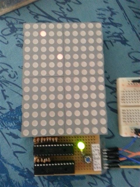 Nu heb ik 4 van die DOT matrix display’s, dat beteken dan 10 kolommen en 14 rijen, dat moet kunnen met het eerder genoemd test project.Resultaat: